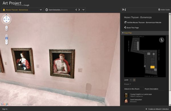 El gigante Google no deja de sorprendernos, no por lo que hace, (ya que todo responde a un plan bien trazado desde el mismo comienzo, otro día hablare de eso) sino por lo bien que lo hace. Una de las ultimas cosas con las que nos podemos deleitar es la versión del “street view” o “vista a pie de calle” pero versión museo y es que estos señores se han dedicado a crear paseos virtuales por los museos mas importantes de todo el mundo (aun no están todos pero es de suponer que irán ampliando la lista) de forma que cualquiera puede moverse por estos simplemente haciendo clic con el ratón y sentirse “casi” como si estuviese allí mismo ya que te puedes mover con “relativa” libertad dentro de los museos como actualmente se hace con la herramienta “street view” a la hora de buscar una calle que no conoces. El programa te permite elegir un museo, después te da distintas opciones, puedes ver los cuadros directamente cosa que “no tiene tanta gracia” ya que es mas natural y porque no decirlo mas divertido “navegar” (movernos) a través de las fotos de 360º que hay de los interiores de los museos para ver todos los cuadros como lo haríamos al pasear por sus salas y pasillos. Si quieres admirar algún cuadro con mayor detalle entonces si que puedes seleccionarlo y verlo digamos a pantalla completa, y mas aun, resulta que los cuadros han sido escaneados/digitalizados con una resolución extremadamente alta (“fotografiados con muchísimo detalle”) de forma que a la hora de ampliar las imágenes en algunos de los cuadros, los que son de tamaño normal (no de 2 metros o mas de ancho) se puede llegar a apreciar perfectamente las pinceladas en el lienzo lo cual si nos paramos a pensarlo es mas de lo que puedes ver en muchos casos si vas al museo en persona porque en la mayoría de los casos no te dejan acercarte tanto los cuadros, al menos no a todos … da que pensar que por Internet puedes llegar a ver los lienzos mejor que “en vivo” ¿verdad? ironías de los tiempos y la tecnología.