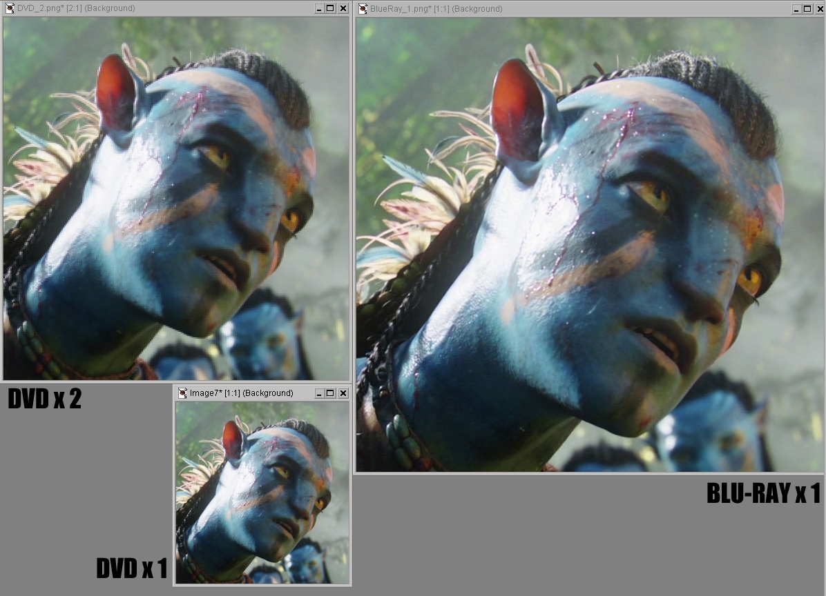 En las siguientes imágenes podemos ver como se ve un fotograma de una película moderna para que no haya acusaciones de que es una película «mal adaptada» a Blu-ray, el título como no, «Avatar».